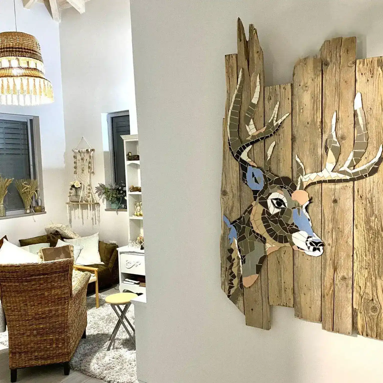 These art pieces of Deer Head Mosaic Wall Art are made of individually crafted high-quality ceramic pieces that were mounted onto the delicate wood to create a 3D effect.