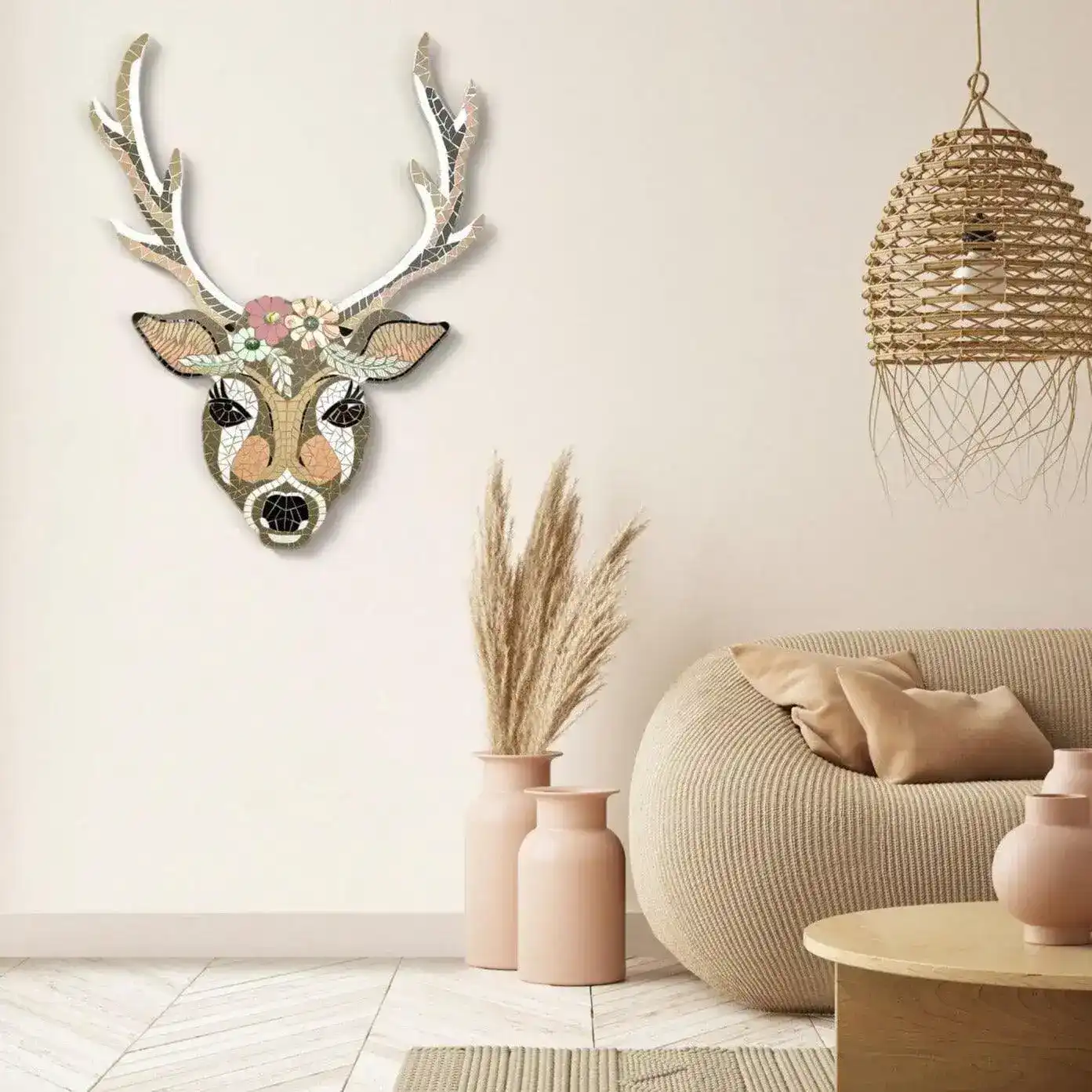 These art pieces of Deer Mosaic Wall Art are made of individually crafted high-quality ceramic pieces that were mounted onto the delicate wood to create a 3D effect.