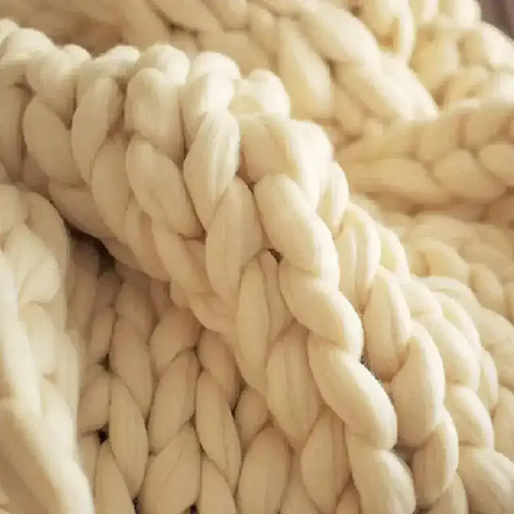 -70%Hand Knitted Merino Wool Chunky Throw Blanket—