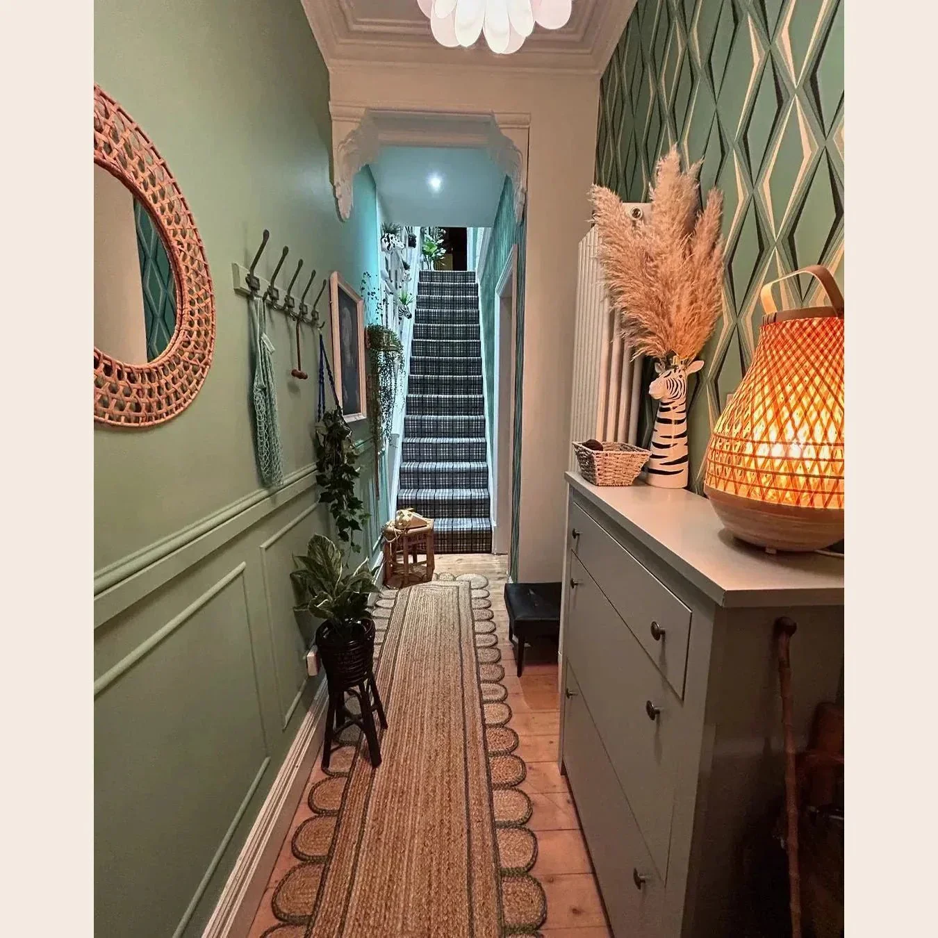 This Handmade Olive Green Scalloped Jute Rug is kid and pet friendly, making it perfect for high-traffic areas such as your living room, dining room, kitchen, office, and entryway.
