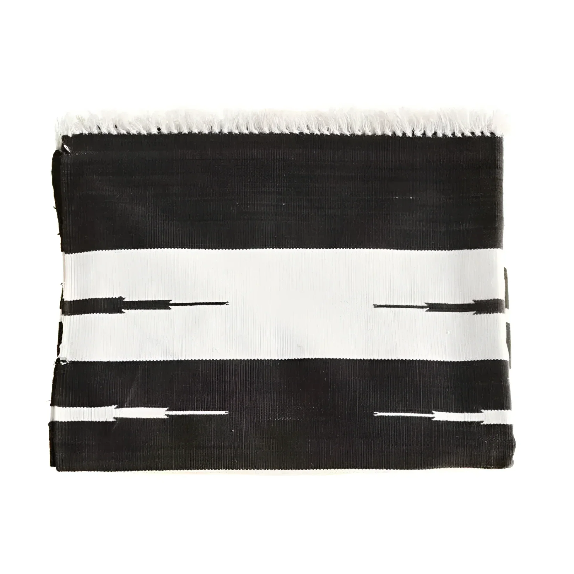 Our Vegetable Dyed Dhurrie Cotton Rug features a dramatic black and white contrast, adding a modern simplicity to your home while appreciating global art.